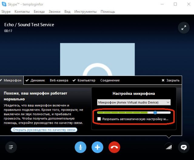 На картинке показана форма для настройки звука (колонок и микрофона) и веб-камеры. Поставьте комфортный для вас уровень громкости. Проверьте, как работает микрофон. Для начала можно поставить галочку слева от «Разрешить автоматическую настройку микрофона». Затем выберите веб-камеру, если это необходимо.