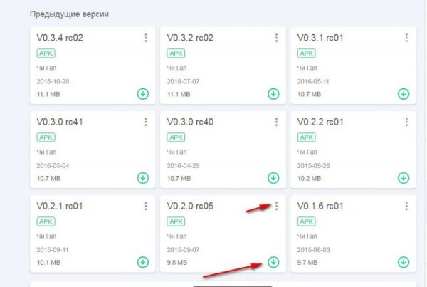 Чигап.рф – домен на русском, так и вводится в адресную строку браузера. Здесь, на страничке https://xn--80afo4azb.xn--p1ai/faq/chigap-starye-versii, можно раздобыть самый старый Чи Гап. А именно – v. 0.1.6 rc01 для ОС Android 2.3.2+ от 03.08.2015 года. Просто прокрутите страничку по указанному URL вниз и щёлкните необходимую ссылку.